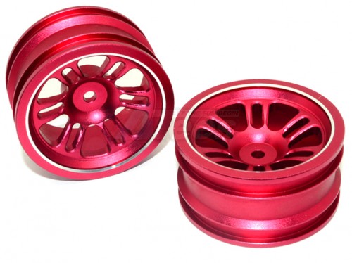 Aluminium Front/Rear 6 Poles Rims With Silver Lining - 1Pr Red by GPM Racing