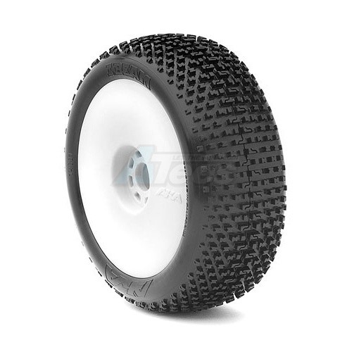 Factory description: AKA 1:8 BUGGY I-BEAM (SOFT) EVO WHEEL PRE-MOUNTED WHITE