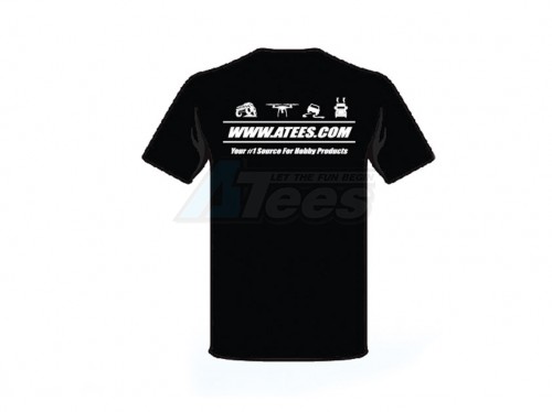- ATees T-Shirt in black color. Logo printed in the front and signature product lines on the back.