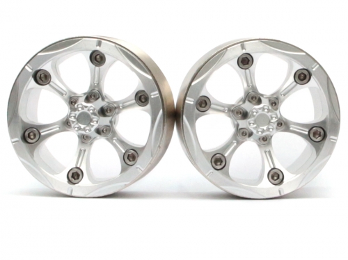 Packing 115g of extra weight per wheel, these monster wheels are compatible with a wide range of 1/10 crawlers, such as the Axial SCX10, Wraith, or TF2. CNC-machined from aluminum. Available in a range of styles. Anodized finish available in metallic green, black, silver or gunmetal colors. - Color: Silver