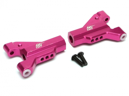 Replacement for the stock FRP parts and compatible with both AWD and RWD versions of the Sakura D4. Available in signature Sakura anodized pink, gun metal, or silver. Includes 2 mounting screws.