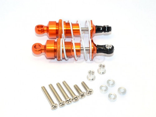 Aluminum Ball Top Damper (55mm) With 1.5mm Coil Spring & Aluminum Collars & Washers & Screws - 1pr Set Orange