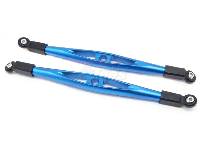 A pair of aluminum rear upper chassis links for the Axial Yeti XL 1/8 rock racer. Features reinforced plastic ball ends. Stronger and more durable than the equivalent stock Axial molded plastic parts.