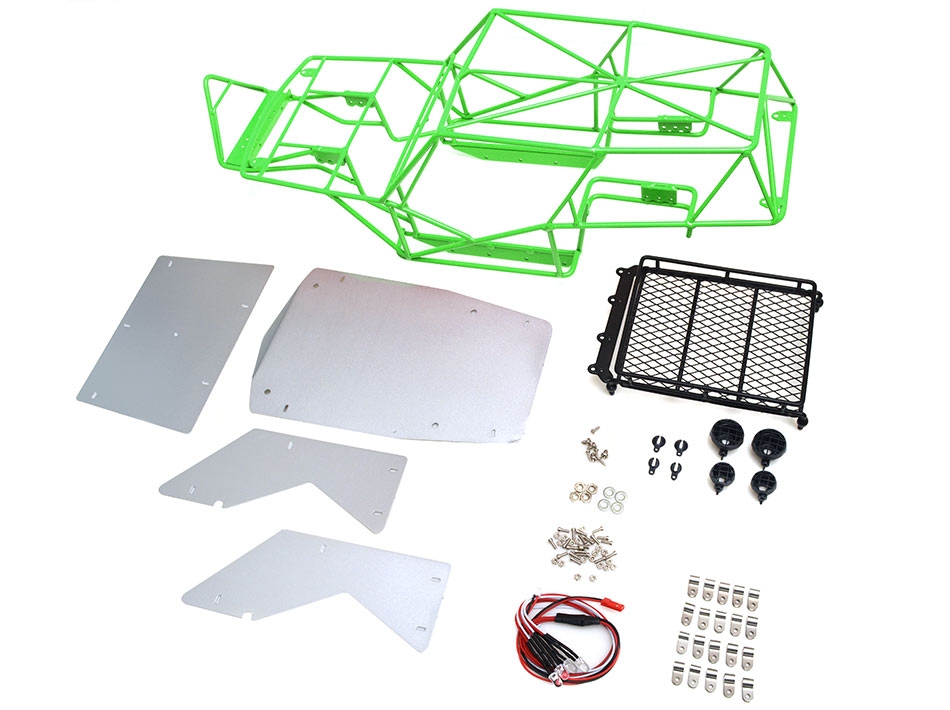 Heavy Duty Steel Outer Cage For Wraith With Roof Rack, Metal Plates & LED Set Green