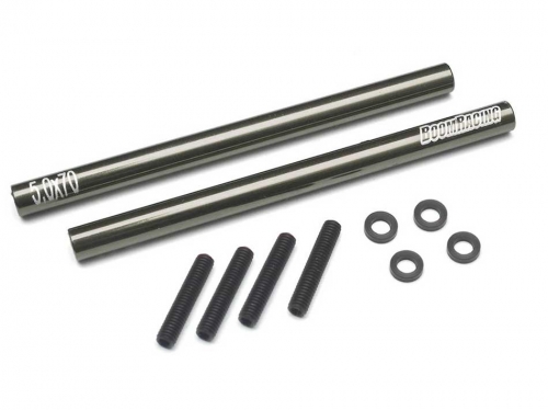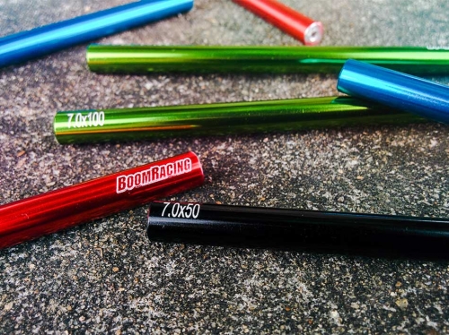 - Factory description: Boom Racing Threaded Aluminum Pipe 5x70mm (2) w/ Set Screws & Derlin Spaces