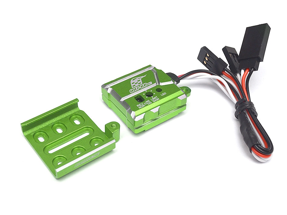 007-BR V2 Gyro allows you to hold that drift angle that you've always dreamed of. Pre-loaded with a customized firmware for drift, the aluminum case dissipates heat and allows you to use the same gyro unit on multiple cars using the universal mounting tray.