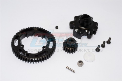 GPM Racing Aluminium Gear Adapter+Steel Spur Gear 53T+Motor Gear 17T - 1Set Black for Traxxas XMAXX