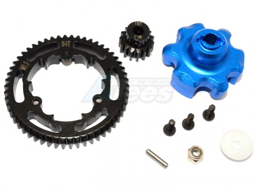 Aluminium Gear Adapter+Steel Spur Gear 55T+Motor Gear 15T - 1Set Blue by GPM Racing