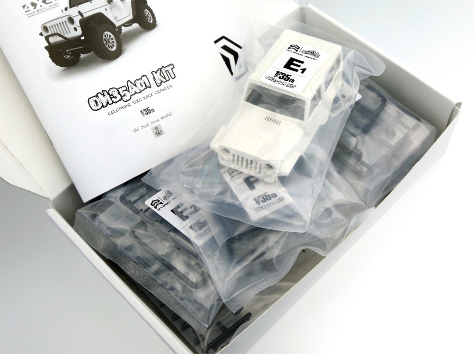 Orlandoo first took the world by storm with the OH35P01 1/35 Palm Sized Crawler with a F150 body, then with the addition a full range of option parts for the OH35P01 the little crawler was indistinguishable from the 1/10 Crawlers! Now, Orlandoo have released a update to their successful little platform, called the OH35A01! It will come with an ABS Wrangler hard plastic body, and will be un-painted white.