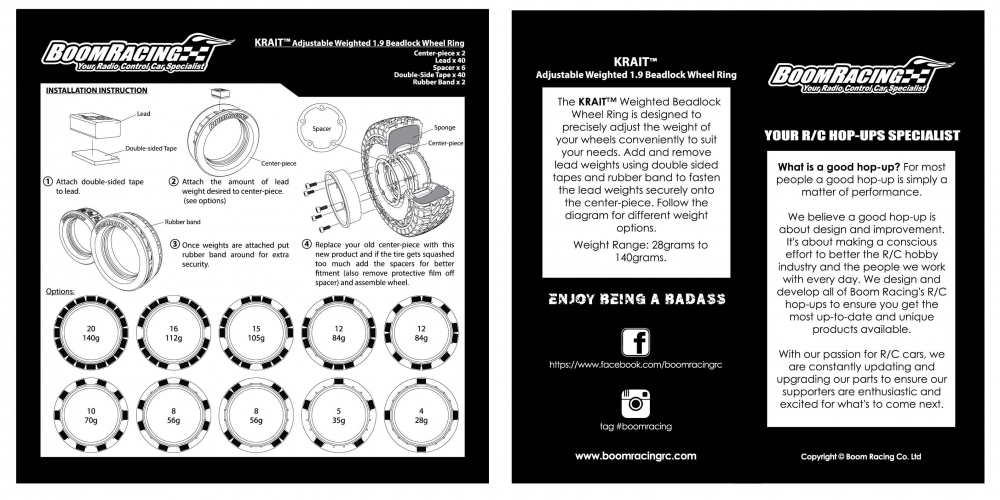 - Factory description: Boom Racing KRAIT™ Adjustable Weighted Beadlock Wheel Ring (2)