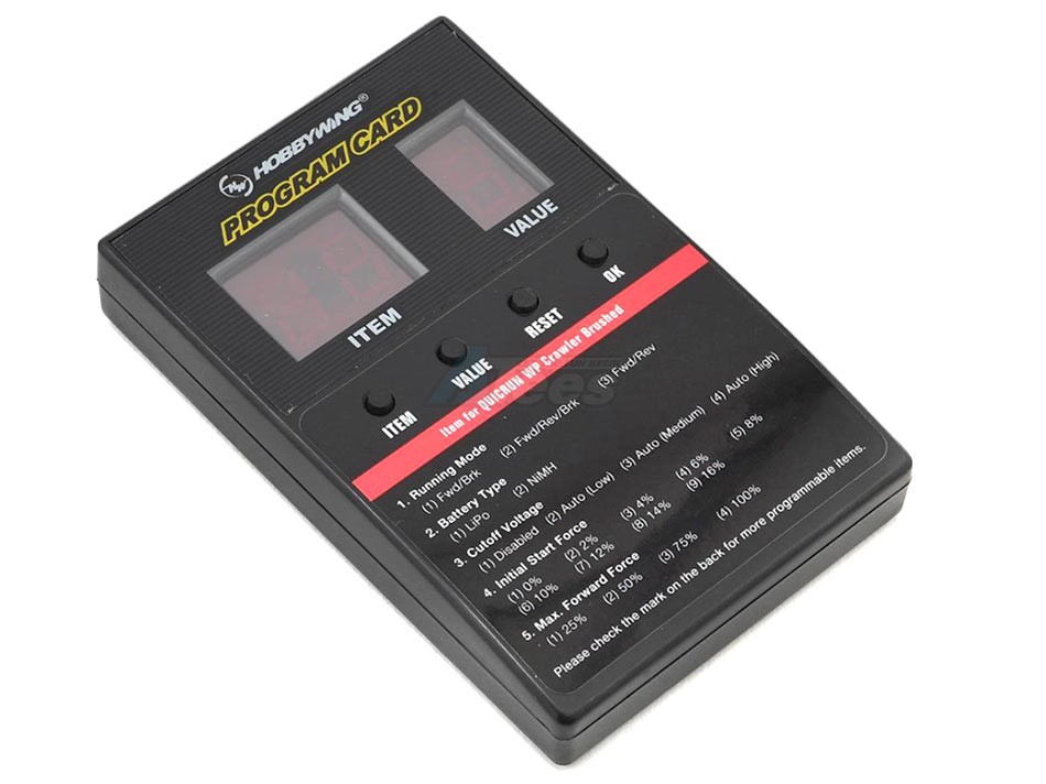 - Factory description: Hobbywing QuicRun WP-Crawler-Brushed ESC Waterproof 80A for 1/10 & 1/8 Crawler with LED Program Box