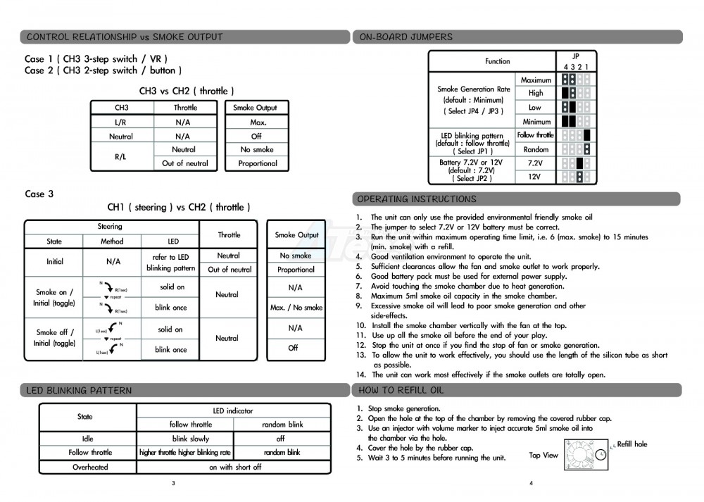 - Follow proportional throttle to emit smoke if CH3 sets to smoke following throttle