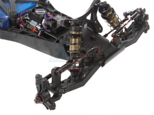 Rear suspension arms The long and durable rear suspension arms are very tough units to withstand the rigors of the track and the hard landings. The rear arm offers 2 options for shock position and two mounting locations for the rear anti-roll bar if needed.