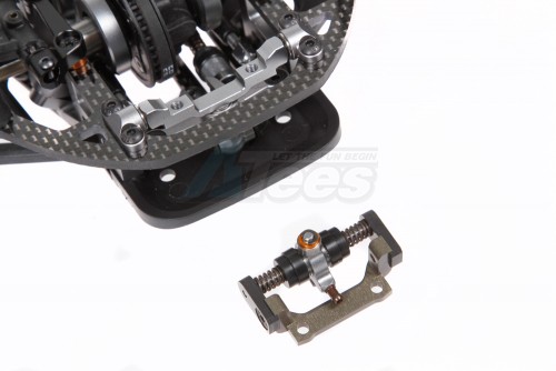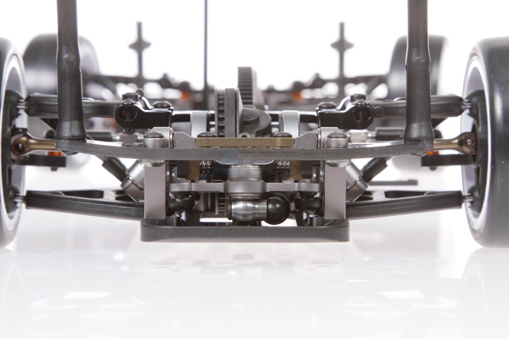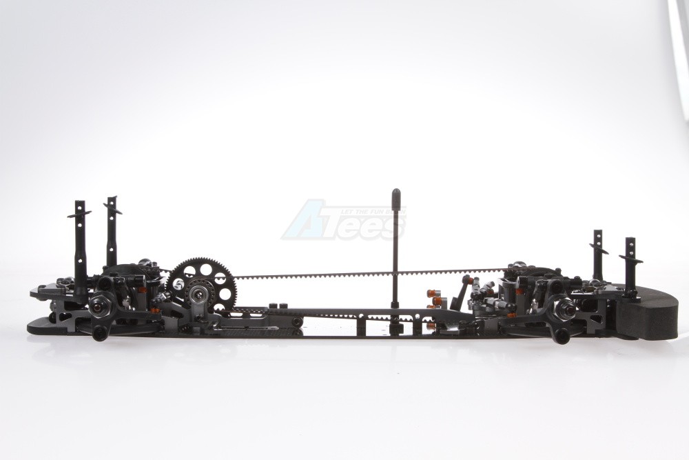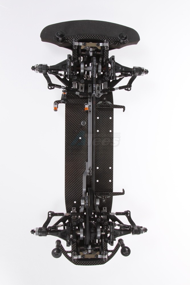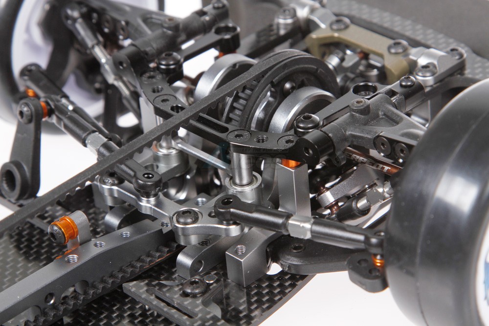 Key features -Completely new suspension design system -Separation of the roll and the heave dynamics, so these can be set-up separately for cornering and for bumps -Very low centre of gravity -Front and rear end share almost all parts -Inversed steering system for better control over Ackermann angle -Quick access and change of the damper units -Fast and easy one-screw ride height adjustment -Fast and easy spool and diff removal -New spool with blades and new gear differential -RRS system standard
