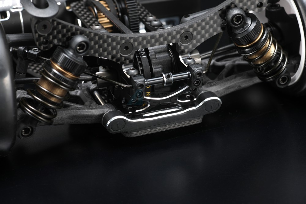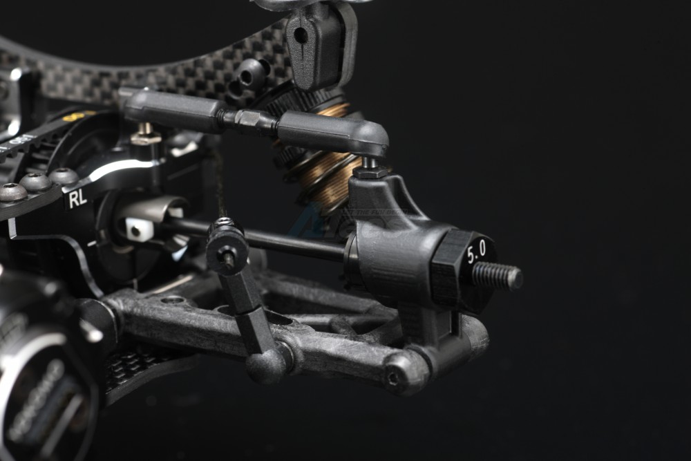 The FR and RR suspension mounts have now been changed to a low COG bushing style mount, (1mm lower) which improves the time to make toe in/out adjustments, and allows the customer not to have to carry a considerable range of blocks.