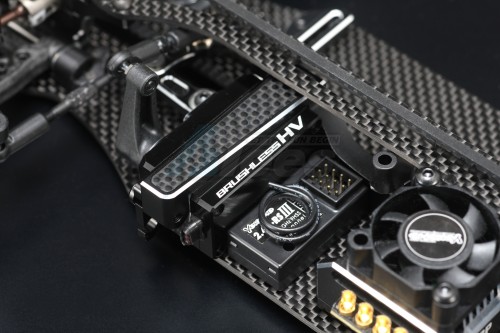 The Aluminum Servo mount has now been redesigned and is a standard feature in the new BD8 kit, the new mount is a floating wrap around style which has been extended slightly to decrease chassis twist.