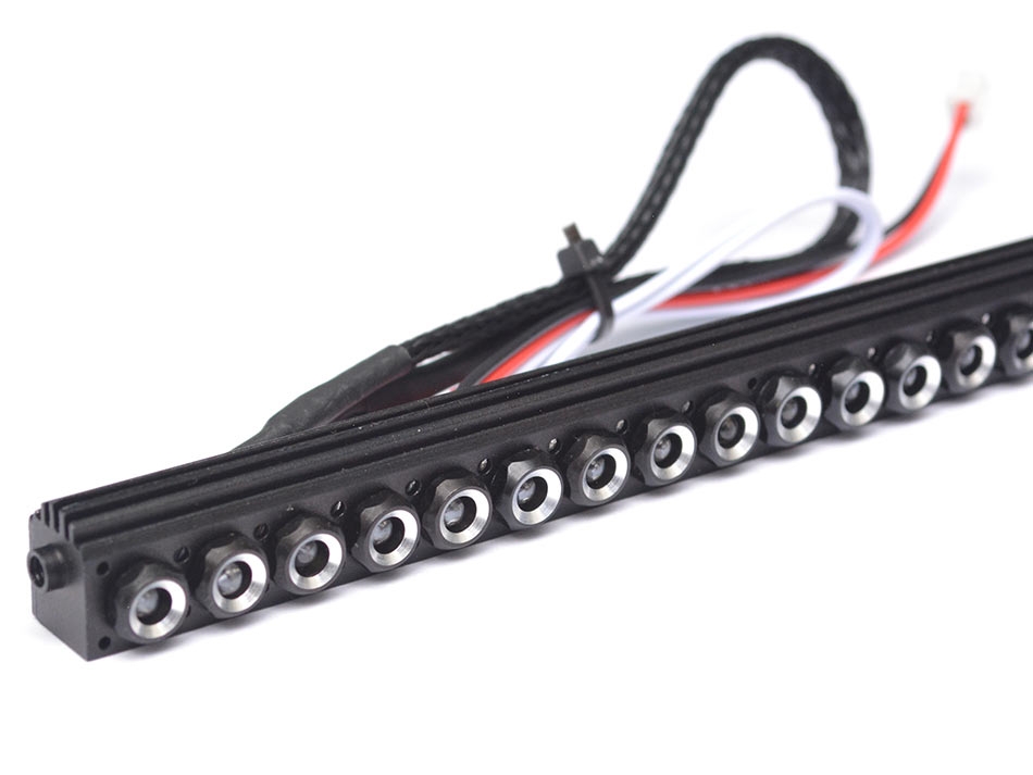 - Ultra bright 18 LED light bar for your custom crawler project! Comes with mounting bracket to mount this light bar to your body/bumper with four screws! Power cable comes attached with both JST and LED Main unit plug for you to choose from.