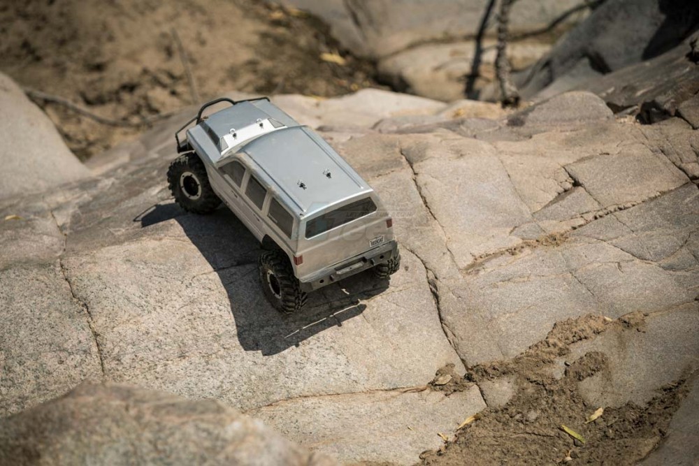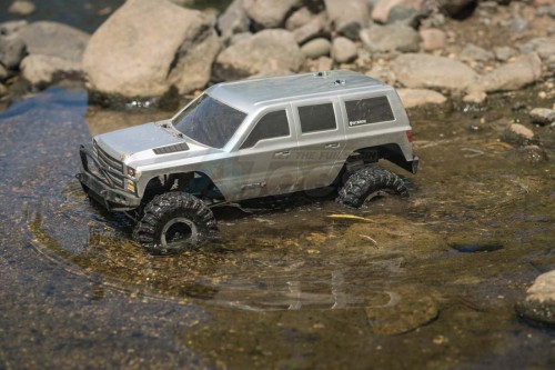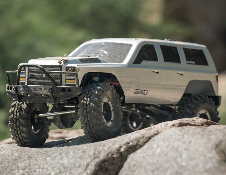 Combine this awesome chassis with a Hobbywing Brushed ESC, Licensed Interco Super Swamper tires and real beadlock wheels and the Gen7 sets itself apart from the rest with its features and performance. The aggressively styled 4 door SUV body is available in silver or orange, and the included black, white, red and wood grain die cut decals will allow you to detail the truck the way you want. Plus, the included 2000mAh NiMH battery, charger and 2CE 2.4GHz radio system are included as well to make the Gen7 and unmatched value in the scale crawler market.