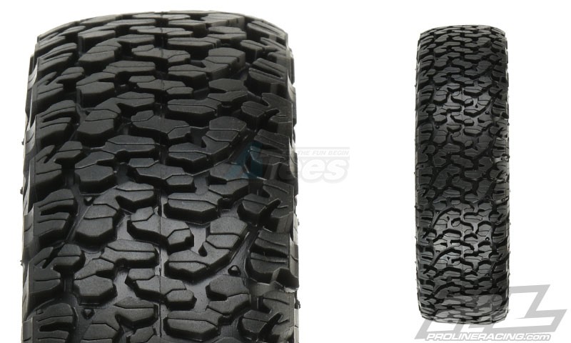 - This is a pair of BFGoodrich® KO2 1.9” tires. Pro-Line is proud to announce a partnership with the leading full-size Off-Road tire manufacturer - BFGoodrich®! This collaboration started with the introduction of the full-race BFGoodrich® Baja T/A KR2 tires and continues with the extremely popular BFGoodrich® All-Terrain KO2 tires available in Pro-Line’s legendary G8 compound! Details from the full-size race All-Terrain tire have been recreated to give your truck the ultimate in scale look and multi-surface performance. Known for extreme off-road traction and awesome street performance in the full scale world, the BFGoodrich® All-Terrain KO2 tire features an iconic layout of densely packed tread blocks with a large number of tread sipes that will give your rig improved traction on any terrain! Pro-Line engineers decided that the KO2 tire needed to be 4.35” tall x 1.42” wide for the perfect balance of Scale looks and performance! The all-new BFGoodrich® All-Terrain KO2 1.9” tires from Pro-Line are a must have. Get yours today!