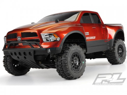 This is a 2013 Ram 1500 True Scale Clear Body. The time has come for all you Ram Truck fans! Pro-Line’s new 2013 Ram 1500 True Scale body for Short Course Trucks is here! Pro-Line now gives you the option to convert your Slash® and SC10 Short Course Truck into a True Scale Ram Lifted Truck. This Ram body is perfect for making your friends jealous and giving your Truck a completely different look! Don’t show up to the local bash spot or track with the same body as everyone else… Get your True-Scale 2013 Ram 1500 body from Pro-Line today!