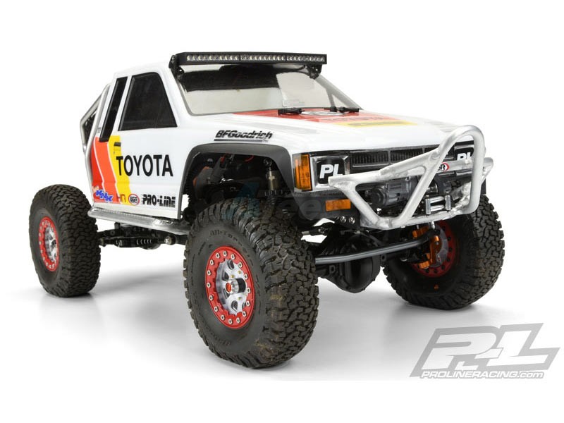 - This is a 1985 Toyota HiLux SR5 Rock Crawler Body. Toyota® fans rejoice! Pro-Line is pleased to announce the release of the fully licensed 1985 Toyota® HiLux SR5 body for the SCX10 Trail Honcho! Pro-Line brings another iconic crawler back to life with exacting scale details and performance enhancements that will please any scale adventurer.This 1985 Toyota® HiLux SR5 body is available in two configurations; either with the Cab and Bed or just the Cab alone so you can mount the Cab and/or the Bed separately and customize to your liking. Maximum crawling performance. Get Back to the Future with Pro-Line’s new 1985 Toyota® HiLux SR5 Clear Body!!