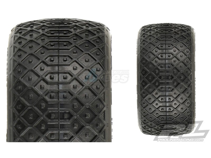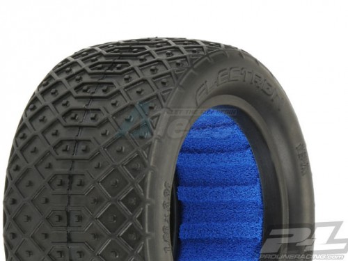This is a pair of Electron Buggy Rear Tires. Pro-Line engineers have emerged from the R&D lab with a new tread design to unleash to the World: the Electron 2.2” Rear! So now you can get the Electron in standard 2.2” or 2.4” VTR mounting style. The Electron shares close family ties with Pro-Line’s popular ION tire with the iconic dirt grabbing center tread and futuristic styling. The Electron features connected tire tread technology to improve traction and wear on even the most abrasive of indoor track conditions. The square center pins laid out between the connected tread provide consistent forward and side bite even when the track gets dusty. Test drivers are amazed at the precision steering and super-fast corner speed that the Electrons provide. The Electron Wave is coming – Don’t get left behind in their wake. Get your own set of Electron tires now!*NOTE: 2.2” Style Tires only work with 2.2” Style Wheels.*