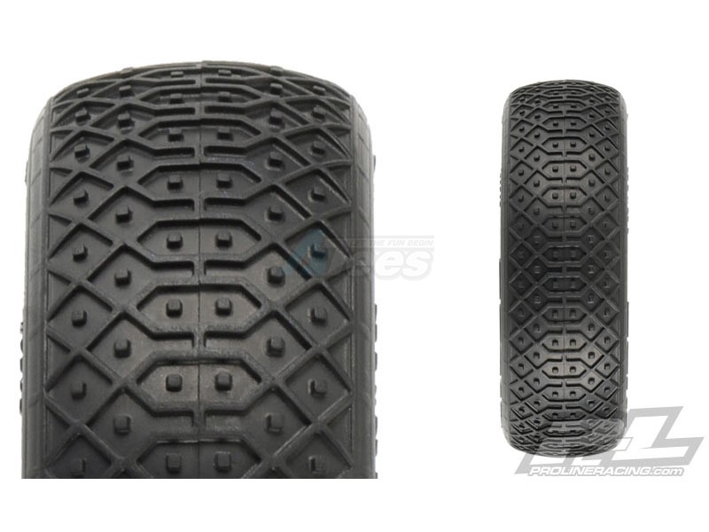 This is a pair of Electron 2.2” Buggy Front Tires. Pro-Line engineers have emerged from the R&D lab with a new tread design to unleash to the World: the Electron 2.2” Front! So now you can get the Electron in standard 2.2” or 2.4” VTR mounting style. The Electron shares close family ties with Pro-Line’s popular ION tire with the iconic dirt grabbing center tread and futuristic styling. The Electron features connected tire tread technology to improve traction and wear on even the most abrasive of indoor track conditions. The square center pins laid out between the connected tread provide consistent forward and side bite even when the track gets dusty. Test drivers are amazed at the precision steering and super-fast corner speed that the Electrons provide. The Electron Wave is coming – Don’t get left behind in their wake. Get your own set of Electron tires now!