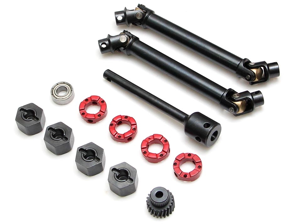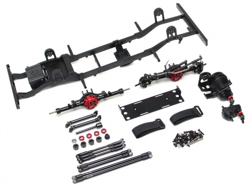 Includes Boom Racing Scale PHAT Axles, Voodoo driveshafts, transmission, T-case, aluminum links, HD gears, battery plate, mounts, skid plate, bumpers, shock towers and receiver box. Does not come with shocks, wheels and tires.