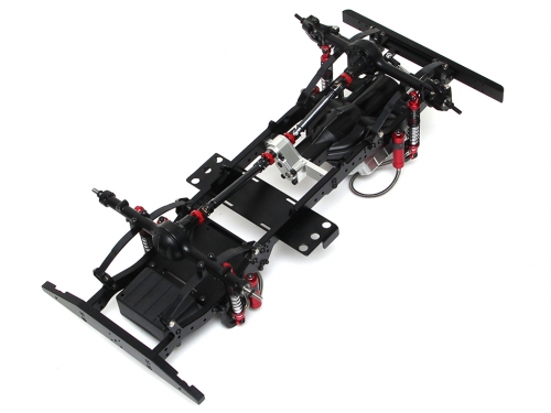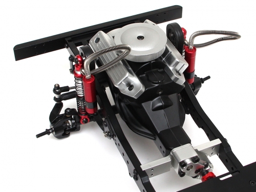 - Complete metal 1/10 Defender D90 crawler chassis kit with a realistic looking V8 engine that houses the gearbox and a very torque pre-mounted 550 motor inside.