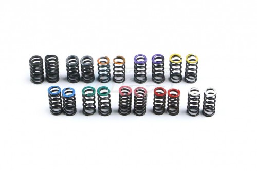 401732 Springset 4X (10x2) A full small spring-set for the Project 4X car. The top quality springs are color coded for easy selection, grinded, manually checked and matched. Set includes: 401705 Spring white C4.4 4X (2) 401706 Spring yellow C4.9 4X (2) 401707 Spring orange C5.5 4X (2) 401708 Spring red C6.3 4X (2) 401709 Spring pink C6.9 4X (2) 401710 Spring blue C7.6 4X (2) 401711 Spring purple C8.4 4X (2) 401712 Spring green C9.5 4X (2) 401713 Spring grey C10.9 4X (2) 401714 Spring black C12 4X (2)