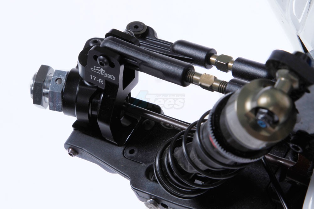 Standard in the SRX8 buggy are the 15 degree engraved black anodized 7075 T6 aluminium c-hubs , and now we also offer a 13 degree and a 17 degree alternative.