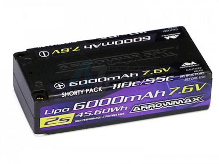 - Factory description: Arrowmax AM Lipo 6000mAh 2S Shorty - 7.6V 55C Continuos 110C Burst
