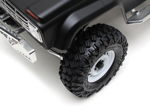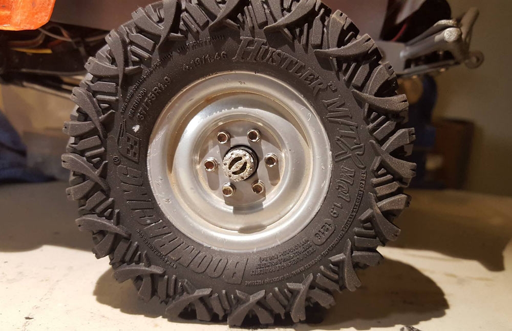 The new tire has a long name - Boom Racing HUSTLER M/T Xtreme 1.9 4.19x1.46 SNAIL SLIME™ compound Rock Crawler Tires W/ 2-Stage Foams (HUSTLER MC1). The long name is justified by the amount of tire technology all packed into one scale RC tire. While keeping the unique features of the original HUSTLER design, a few additional features can be found on the new HUSTLER MC1: Thicker tire carcass all around to hold the lugs better, giving drivers more control and better predictability. Smaller lugs (approx. 3.3mm) in proportion as compared to the larger 4.45x1.57 tire for traction bite as well as scale looks. Where other mainstream tires might find themselves struggling, the HUSTLER MC1 tire is designed to hook up on the toughest lines and do work for you. The lugs act as little claws and grab onto any surface they come in contact. With these tires there is less chances for drivers to look for alternative drive lines.