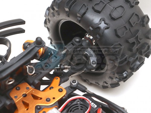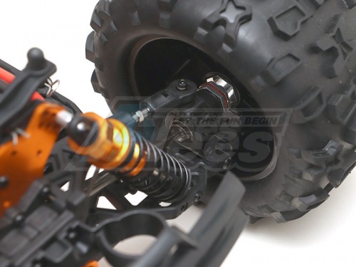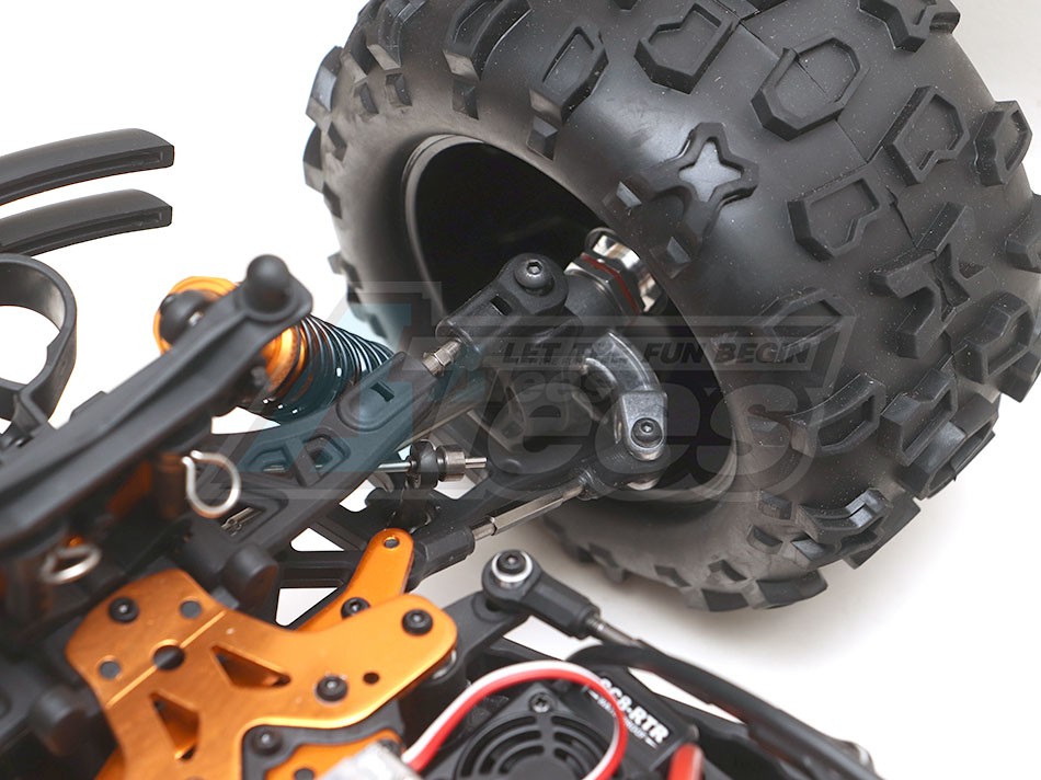 But power isn't everything. You need to transmit that power into the ground and this is where the Maximus scores yet again. You have 4WD through 3 differentials, metal gears in the differentials, and metal drive shafts. The front hub carriers are aluminum for low unsprung weight and durability. Needless to say everything is made for long life and minimum power loss. The grip is transmitted via large, tough wheels and chunky, all-terrain tires. A tread pattern that works copes with just about any off-road surface.