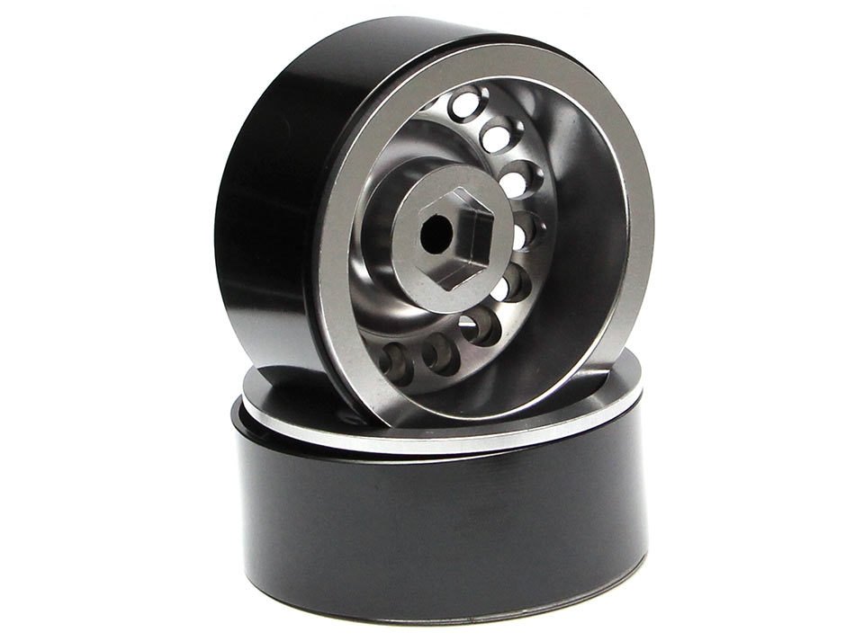 1.9 Badass Classic 16-Hole Steelie & CNC Aluminum Beadlock Wheels W/ Center Hubs (Rear) 2pcs Gun Metal by Boom Racing