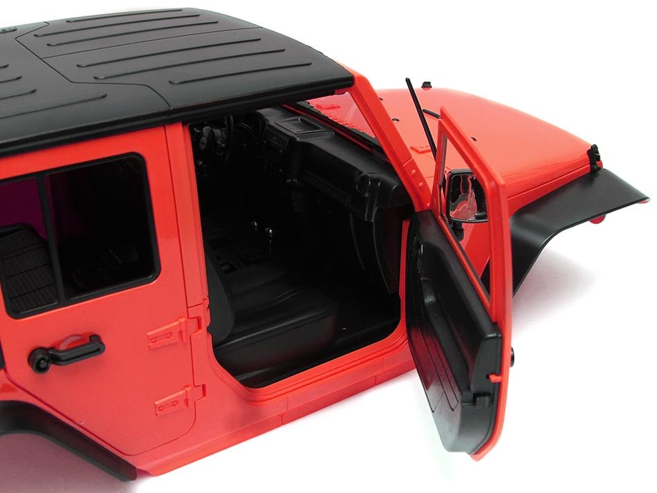 - This Rubicon 5-door version is a must-have for scale freaks! Working front and rear doors. Made of ABS hard plastic. Has an interior included. It comes in a kit and will require assembly.