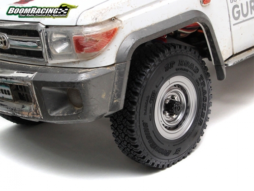 • This 1.55" SP Road Tracker SCALE RC tire is a replica of 1:1 tire. Perfect size for Toyota builds including Hilux and LC70. Build the ultimate stock truck with this tire.