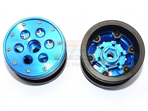 Aluminum Beadlock Weighted Wheels With Weight Holder & Bearings Suitable For All 2.2 Tires - 1pr Set Blue