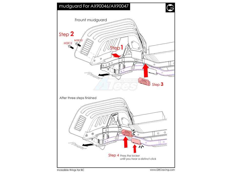 - Factory description: GRC Axial SCX10 II 3D PLA Front Inner Fender for Axial #90046
