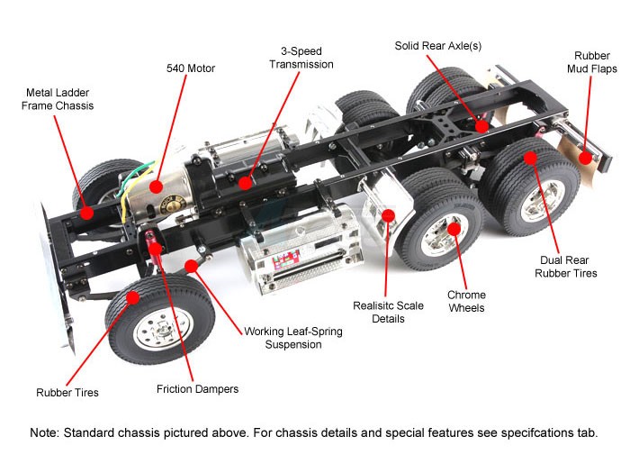• 1/14 scale R/C assembly kit.