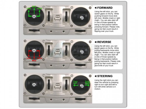• 3-speed transmission enables authentic gear changes while driving. (Requires separately available 4-channel radio system)