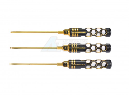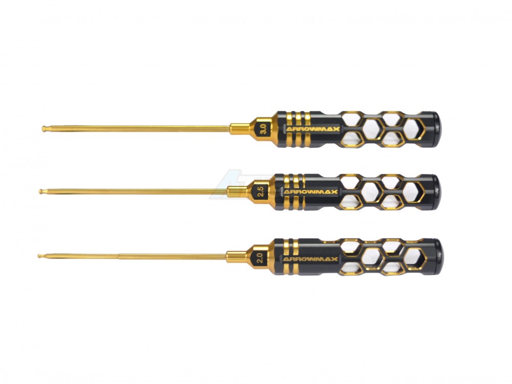 • Factory description: Arrowmax Ball Driver Hex Wrench Set 2.0 2.5 & 3.0 X 120mm - 3-Teilig. Black Golden