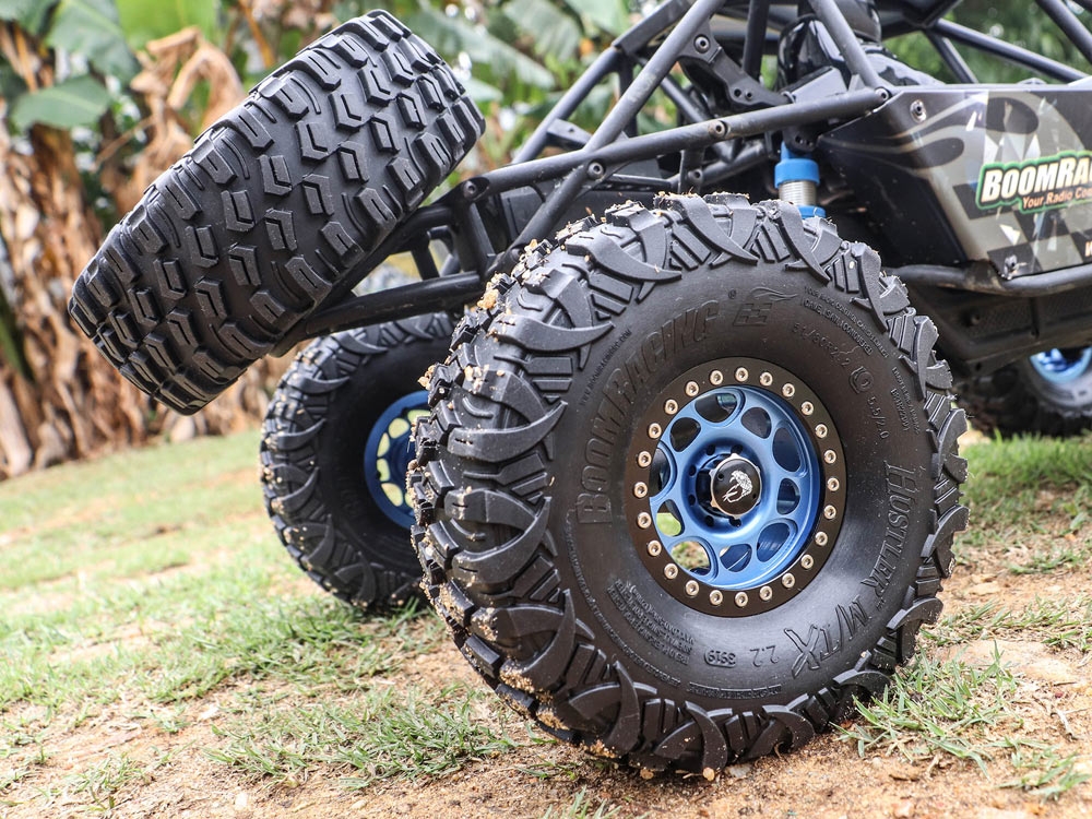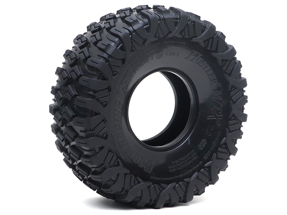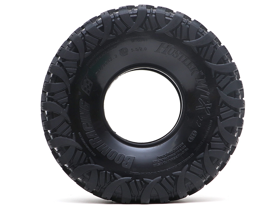 - Factory description: Boom Racing HUSTLER M/T Xtreme 2.2" Rock Racing Tires (Snail Slime Compound) w/ 2-Stage Foams 5.5"x2.0" (139x51mm)