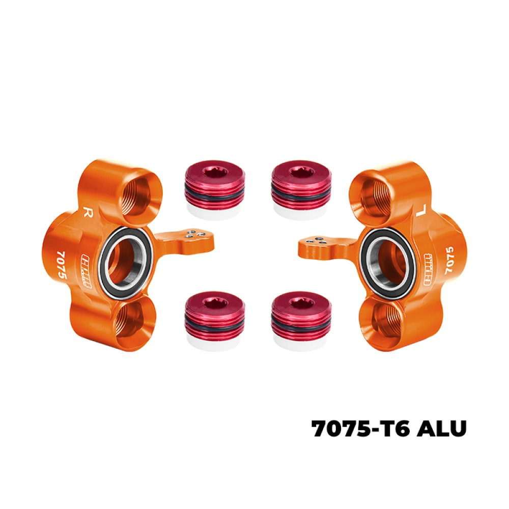 • Material upgrade to 7075 alloy plus alloy front hub nut red, minimize the gap to achieve higher accuracy between bearings and steering block
