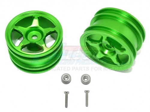 GPM Racing Aluminium Rear Wheel (5 Poles Design) - 6Pc Set Green for Tamiya T3-01 Dancing Rider
