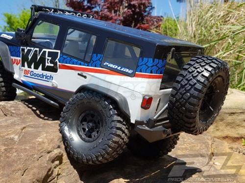 Pro-Line's re-creation of the Mud-Terrain KM3 comes in at 4.75" tall x 1.77" wide for the perfect balance of Scale looks and performance! The all-new BFGoodrich® Mud-Terrain T/A® KM3 1.9" tires from Pro-Line are a must have. Set your truck apart from the rest and get yours today!