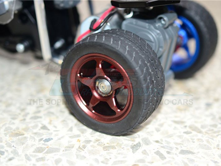 GPM Racing Aluminium Rear Wheel (5 Poles Design) - 6Pc Set Red for Tamiya T3-01 Dancing Rider