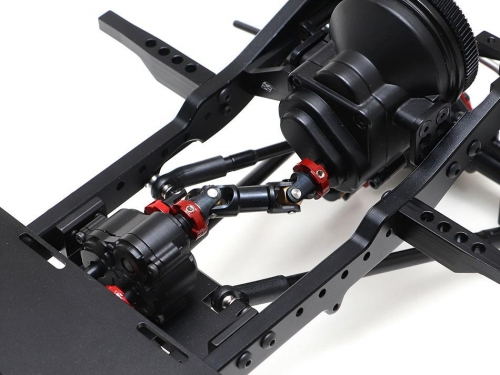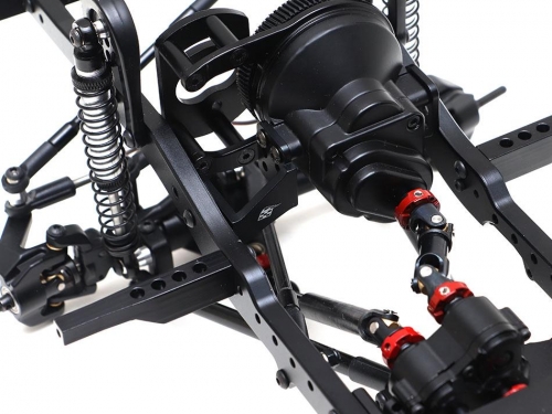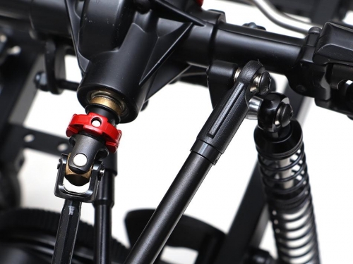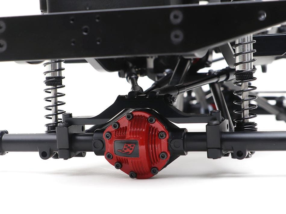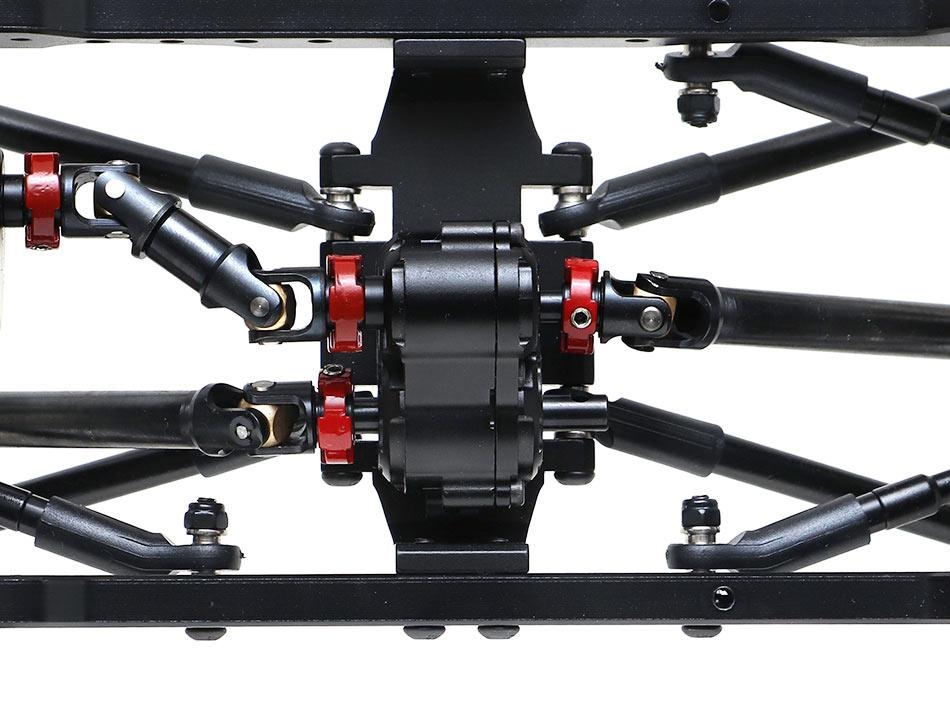 The BRX Anti Torque Twist system reduces twisting of the vehicle when it accelerate. This is because as the two drive shafts rotate in opposite directions, the torques counteract each other. In normal RC crawler drivetrain systems both drive shafts rotate in the same direction making the vehicle twist in one direction. Thus creating a more scale looking vehicle movement.