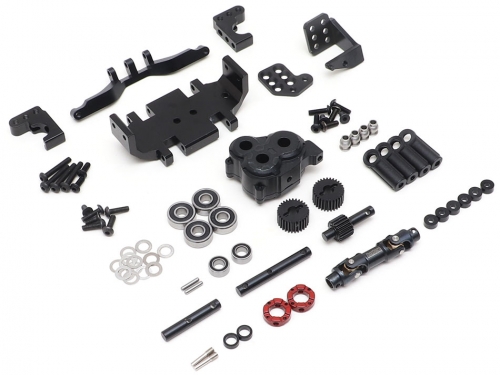 Includes: • 1x High Clearance Alum. Motor Mount #BR302010BK • 1x Voodoo Steel HD Drive Shaft 49mm • 1x High Clearance Skid Plate #BR302011 • 1x BRX Anti Torque Twist Transfer Case #BRQ763069 • 1x Counter Rotation Alum. Link Mounts with Rear Alum. Truss #BRQ763068 • 6x M3x3mm Spacers • 4x M3 Long Straight Nylon Rod Ends
