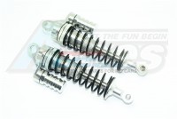 The coil is thickened from 2.3mm to 2.5mm to provide more power. Shock shaft is thickened from 5mm to 7mm in order to be more sturdy and prevent bending. Aluminum shock cylinder is light and sturdy, spring retainer is tightly sealed to prevent oil leaking. L-shape collar extends the travel of the oil which can help to smooth out the drive with better shock performance.